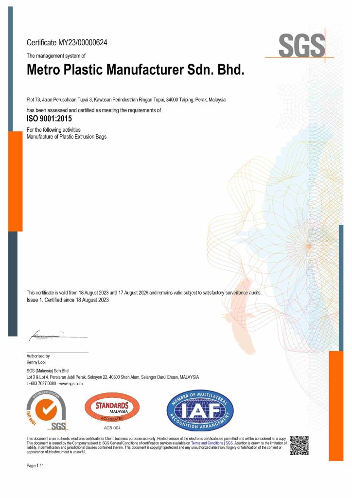 In 2023, Metro Plastic reach its peak through obtaining various certification. Starting with ISO 9001: 2015 which is Quality Management System.